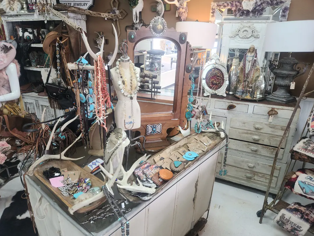 Red Coyote Antique Mall is a local destination for antique shopping in Fort Mohave, Arizona, serving shoppers from Bullhead City, Mohave Valley, Needles, and Laughlin. Browse our 4,800 sq ft showroom filled with vintage furniture, Western art, Native American pottery, jewelry, collectibles, and one-of-a-kind estate finds from multiple dealers and local vendors.